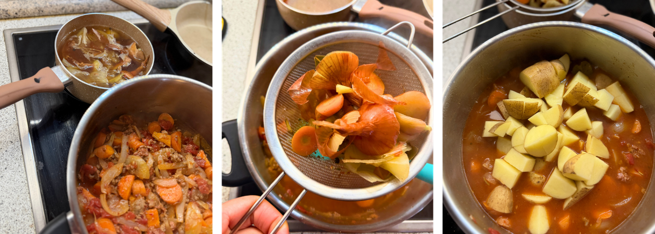 Simmer for 20–30 minutes, then strain. Use this as your base liquid for the stew.